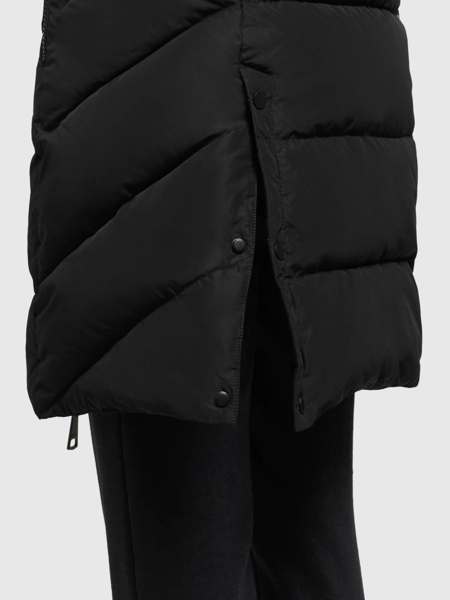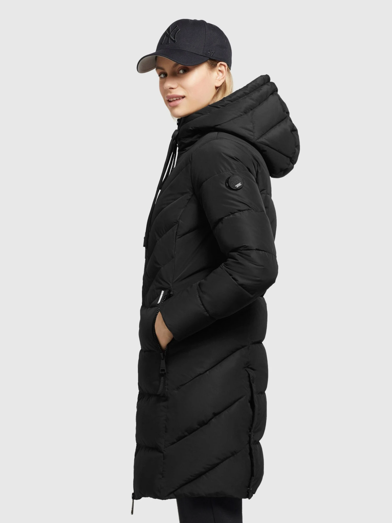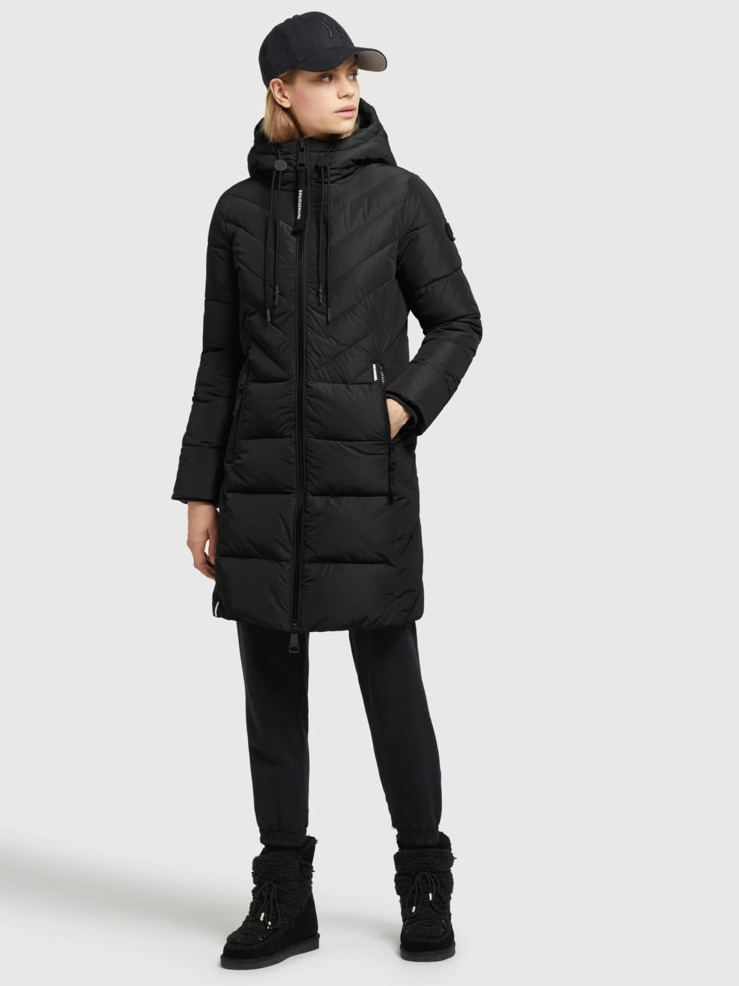 EffenGewatteerde jasCapuchon met trekkoordOp staal nadenGladde stofWarm gevoerdRitssluiting
